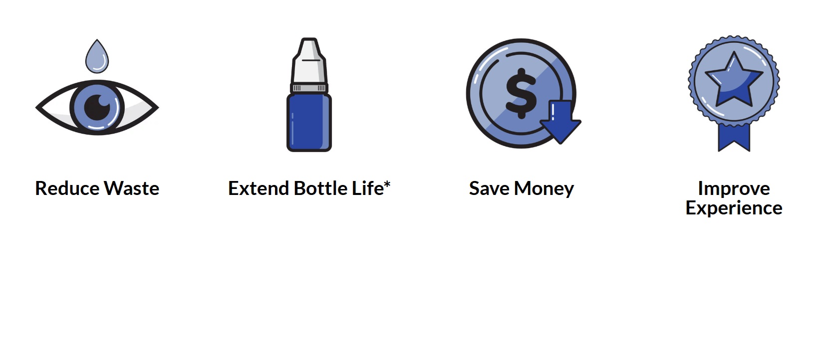 The NanoDropper is a simple, FDA-listed adaptor that fits onto most prescription and over-the-counter eye drop bottles. It reduces the size of each drop by more than 60%, creating a drop that’s just the right size for your eye.